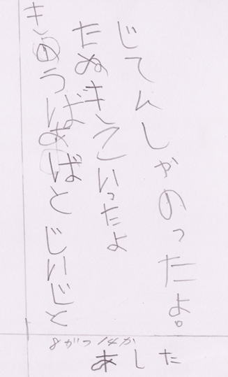 愛娘に聞くところによると、今日は新しいばあばの車に乗って、じいじとばあばと田貫湖までドライブに行って来たそうだ。なんと子ども用レンタサイクルを借りて、湖を一周してきたらしい。じいじとばあばは一緒に行ったのか聞いたら、じいじが大人用レンタサイクルで一緒に付いてきたんだそうな。じいじは自転車乗ったの何十年ぶりなんじゃないか?一周40分くらいかかるだろうに、よく頑張ってくれましたね。